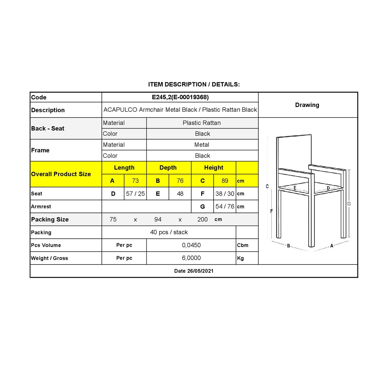 Ε245,2 ACAPULCO Πολ.Μεταλ.Μαύρη, Plastic Rattan Μαύρο