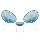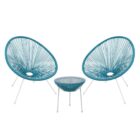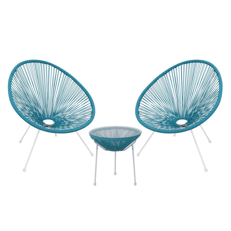 Ε245,Α3S ACAPULCO Set (Τραπ+2 Πολ) Μετ.Άσπρο, Plastic Rattan Μπλε