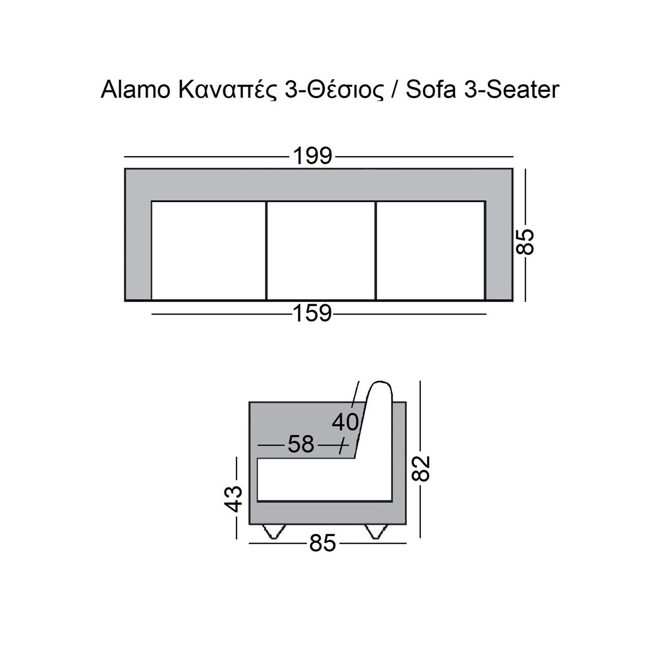 Ε990,13 ALAMO Καναπές 3θέσ.PU Μαύρο