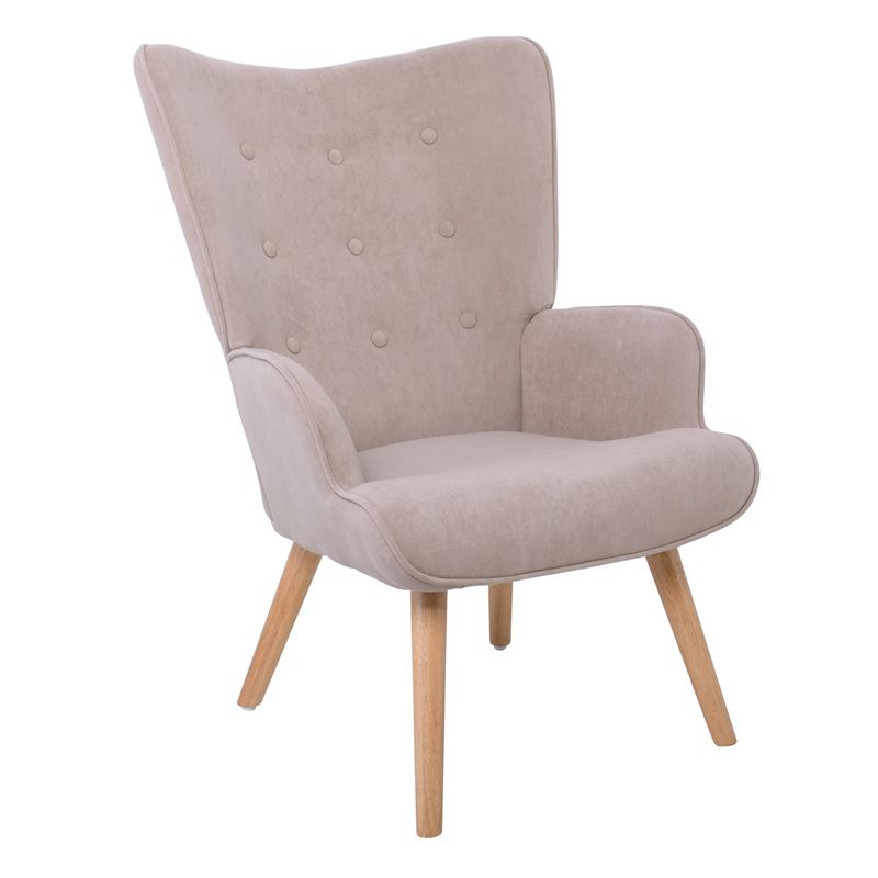 ALMA Πολυθρόνα – Μπερζέρα Σαλονιού – Καθιστικού Φυσικό Ύφασμα Velure Ανοιχτό Καφέ