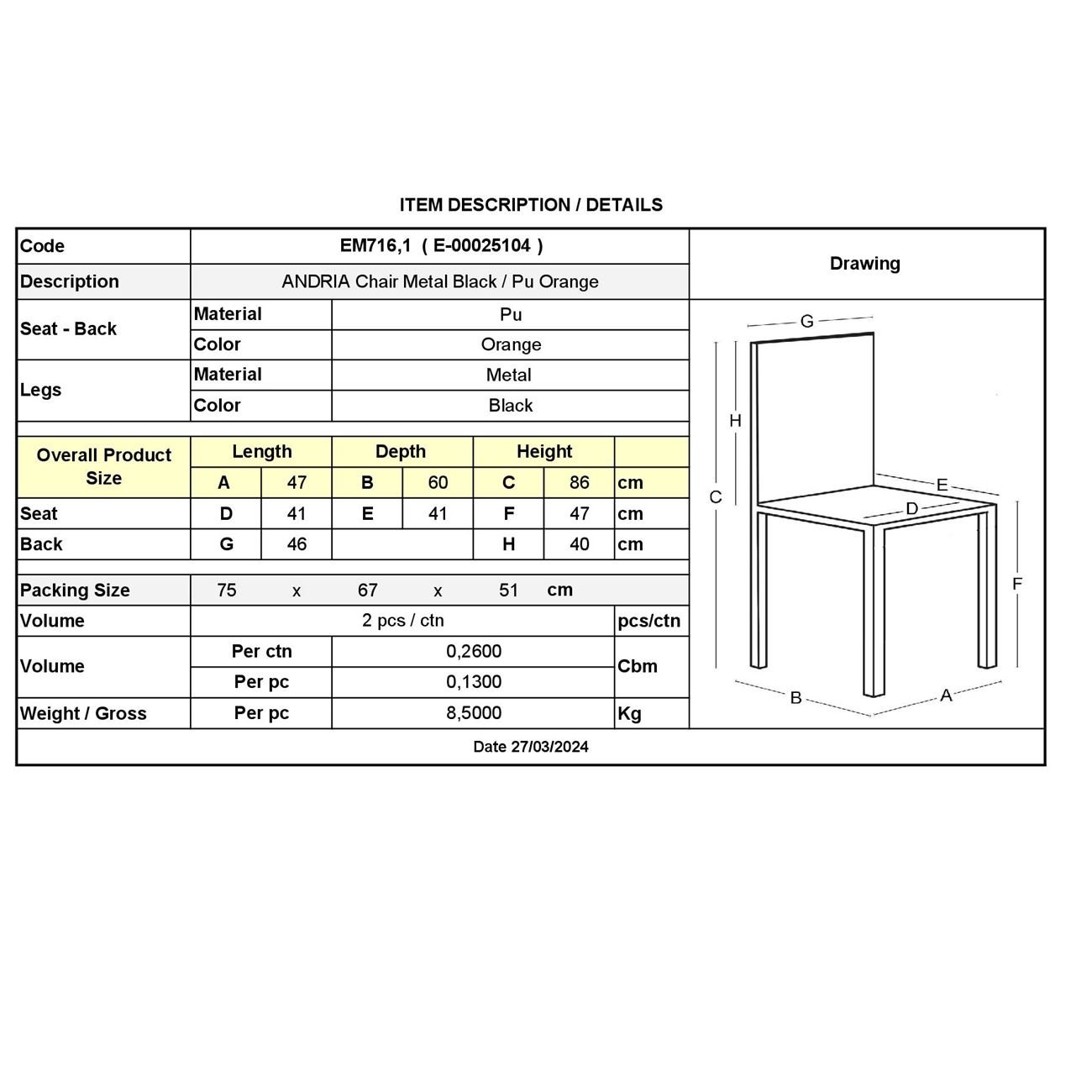 ΕΜ716,1 ANDRIA Καρέκλα Μέταλλο Μαύρο/Pu Πορτοκαλί