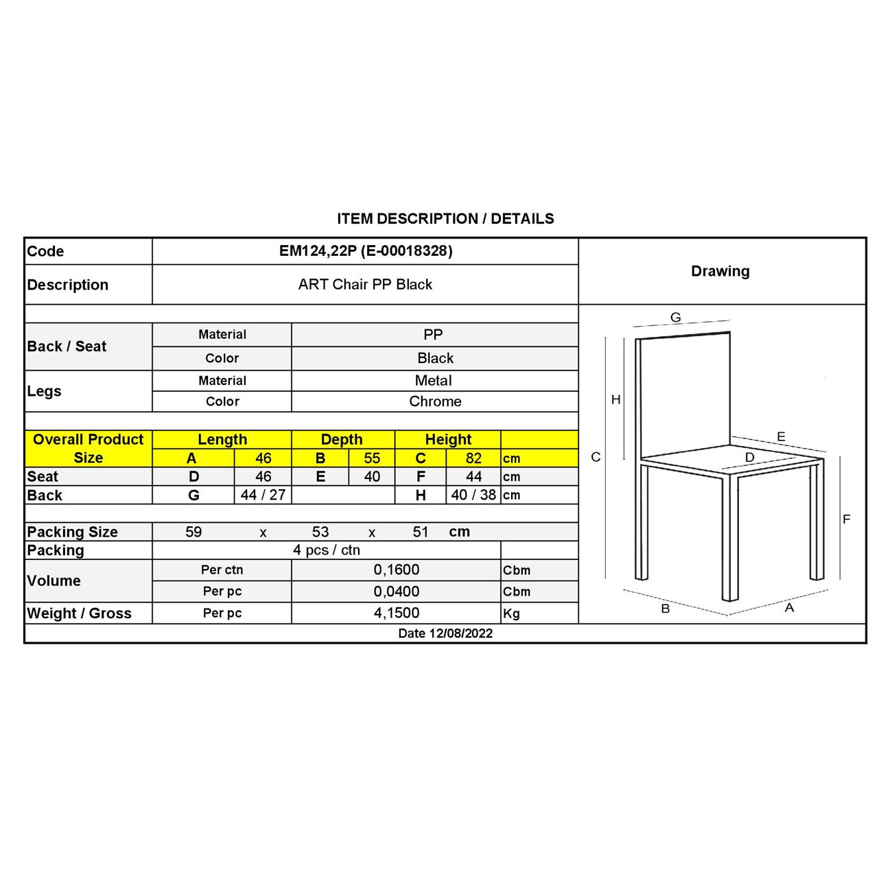 ΕΜ124,22P ART Καρέκλα PP Μαύρο