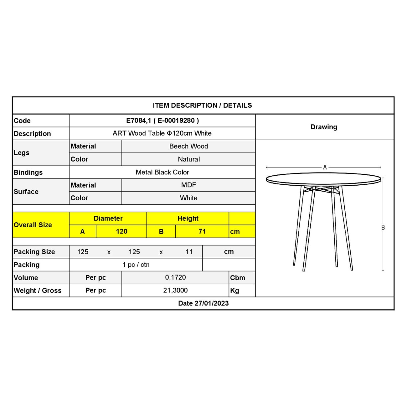 Ε7084,1 – ART Wood Τραπέζι Φ120cm Άσπρο