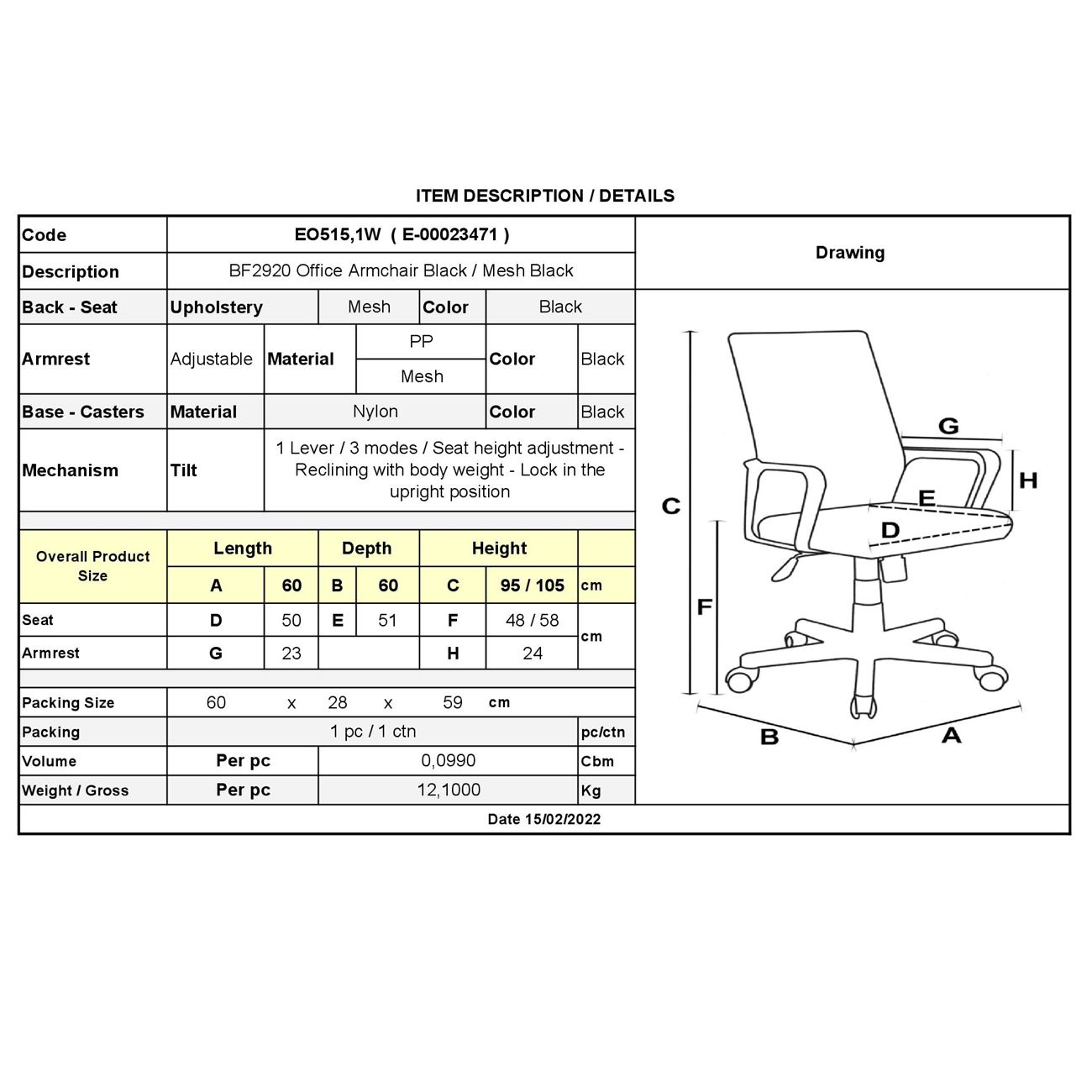 ΕΟ515,1W BF2920W Πολυθρόνα Μαύρο Mesh