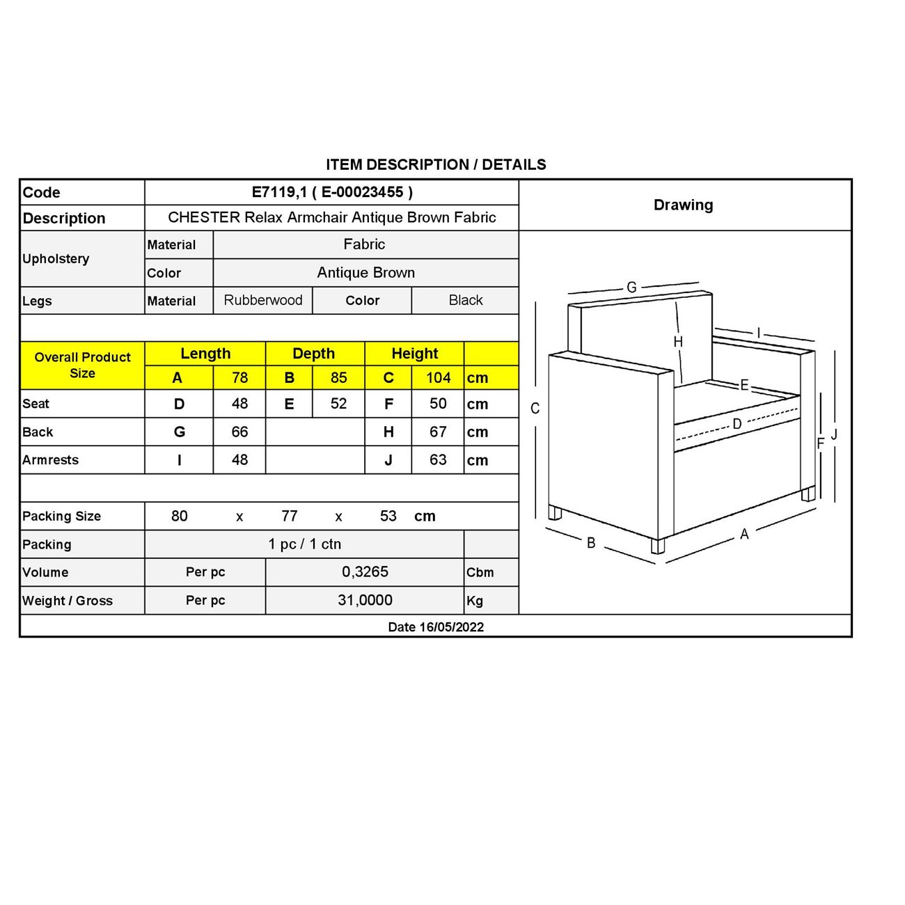 Ε7119,1 CHESTER Πολυθρόνα Relax Ύφασμα Antique Καφέ