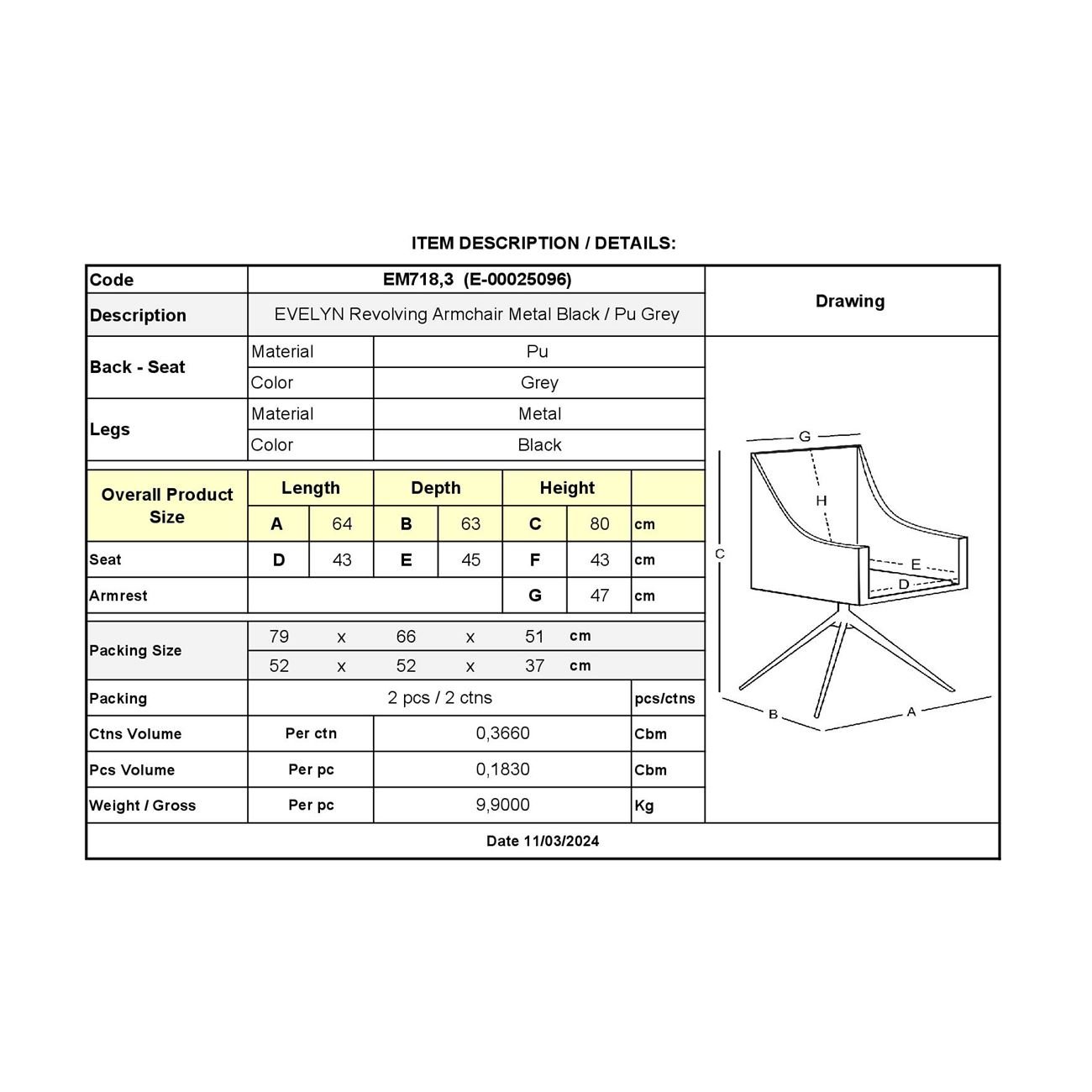 ΕΜ718,3 EVELYN Πολυθρόνα Περιστρεφόμενη Μεταλ.Μαύρο/Pu Γκρι-Μπεζ