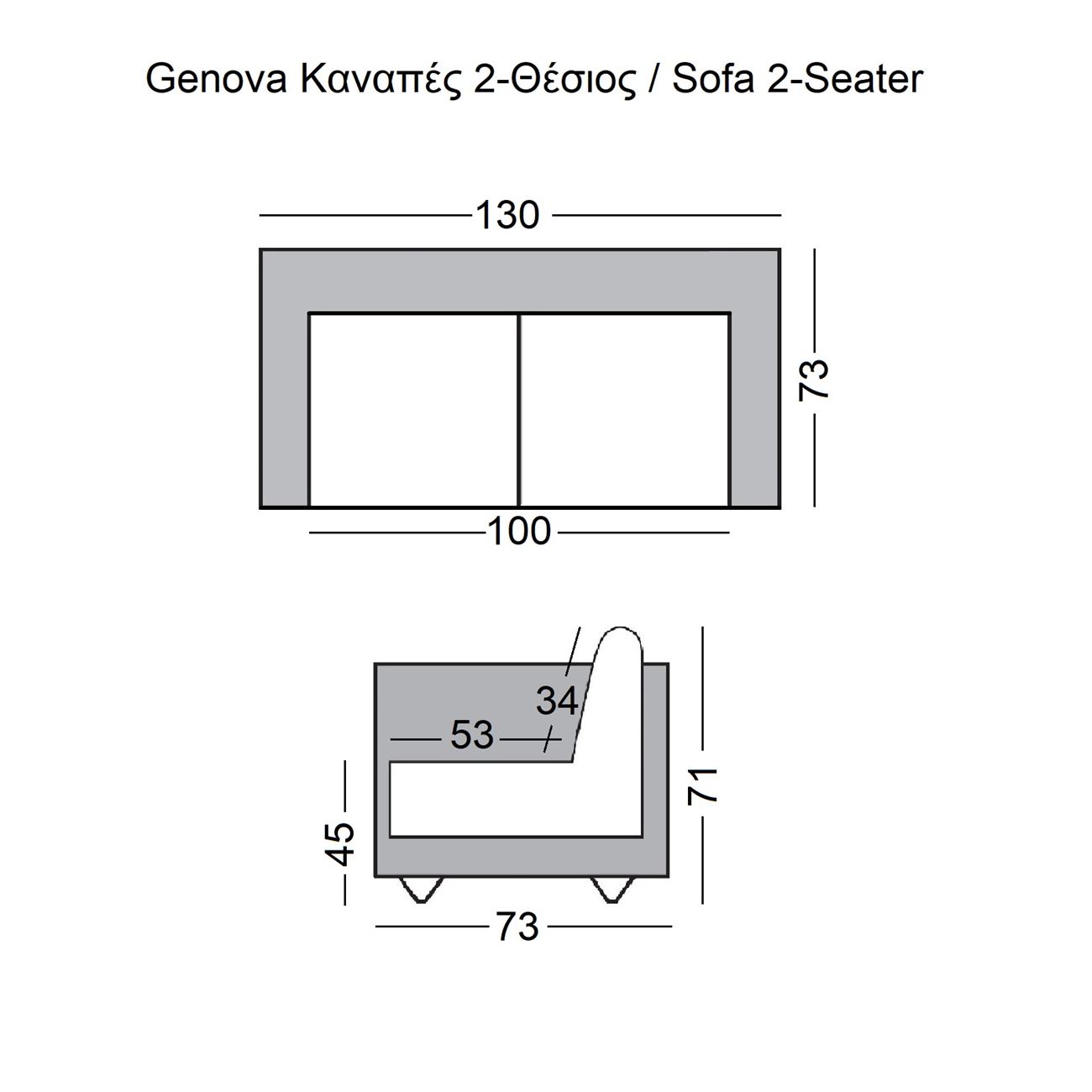 Ε947,21 GENOVA Καναπές 2-θέσιος Inox/Pu Άσπρο