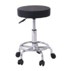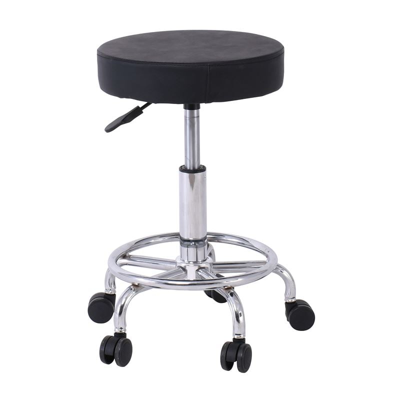 GLORY Σκαμπό με υποπόδιο, Βάση Χρώμιο, PU Μαύρο, Περιστρεφόμενο, Τροχήλατο