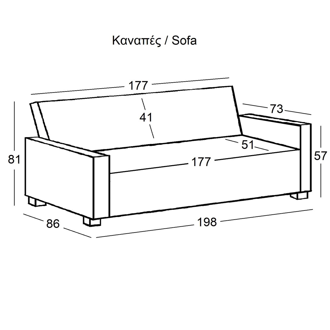 198x86x81cm