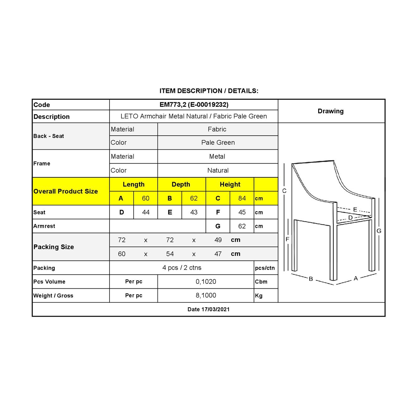 ΕΜ773,2 LETO Πολυθρόνα Μέταλλο Βαφή Φυσικό/Ύφασμα Βεραμάν