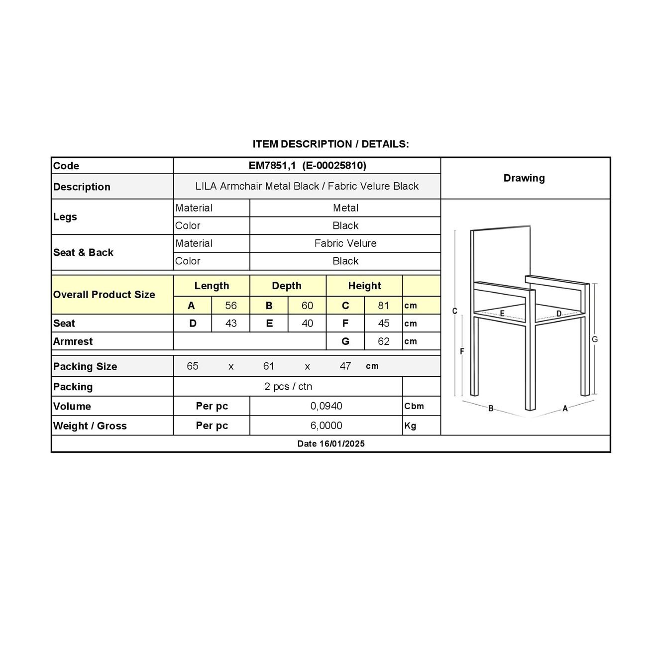 ΕΜ7851,1 LILA Πολυθρόνα Μεταλ.Μαύρο/Ύφασμα Velure Μαύρο