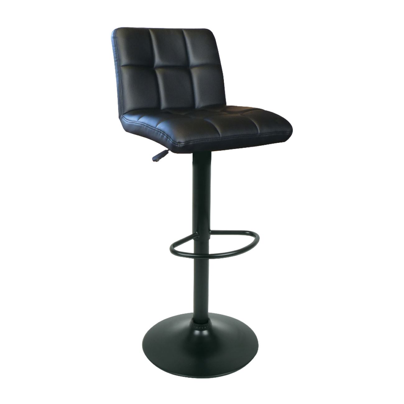 LINO Σκαμπό BAR με Πλάτη, Μέταλλο Βαφή Μαύρο, PU Μαύρο, Ρύθμιση Ύψους, Περιστρεφόμενο