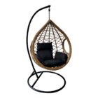 MADRID Κρεμαστή Πολυθρόνα, Wicker Φυσικό, Μέταλλο Βαφή Μαύρο, Μαξιλάρι Μαύρο