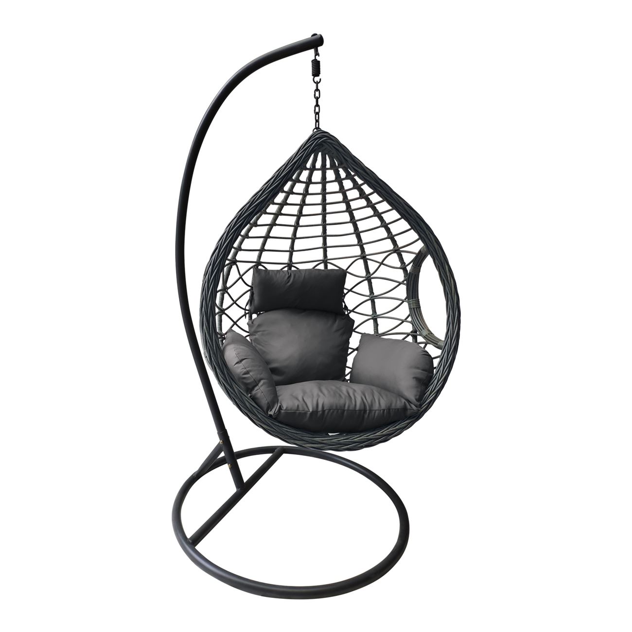 MADRID Κρεμαστή Πολυθρόνα, Wicker Grey, Μέταλλο Βαφή Ανθρακί, Μαξιλάρι Γκρι