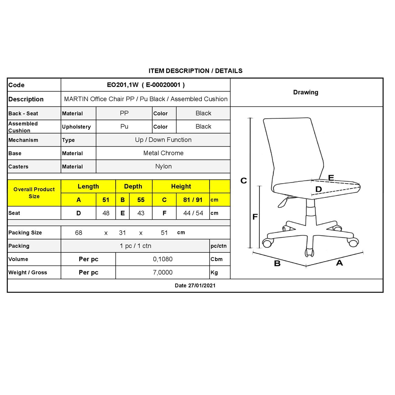 ΕΟ201,1W MARTIN Γραφείου Καρ.PP/Pu Μαύρο (Μοντ/νη ταπετσαρία) Συσκ.1