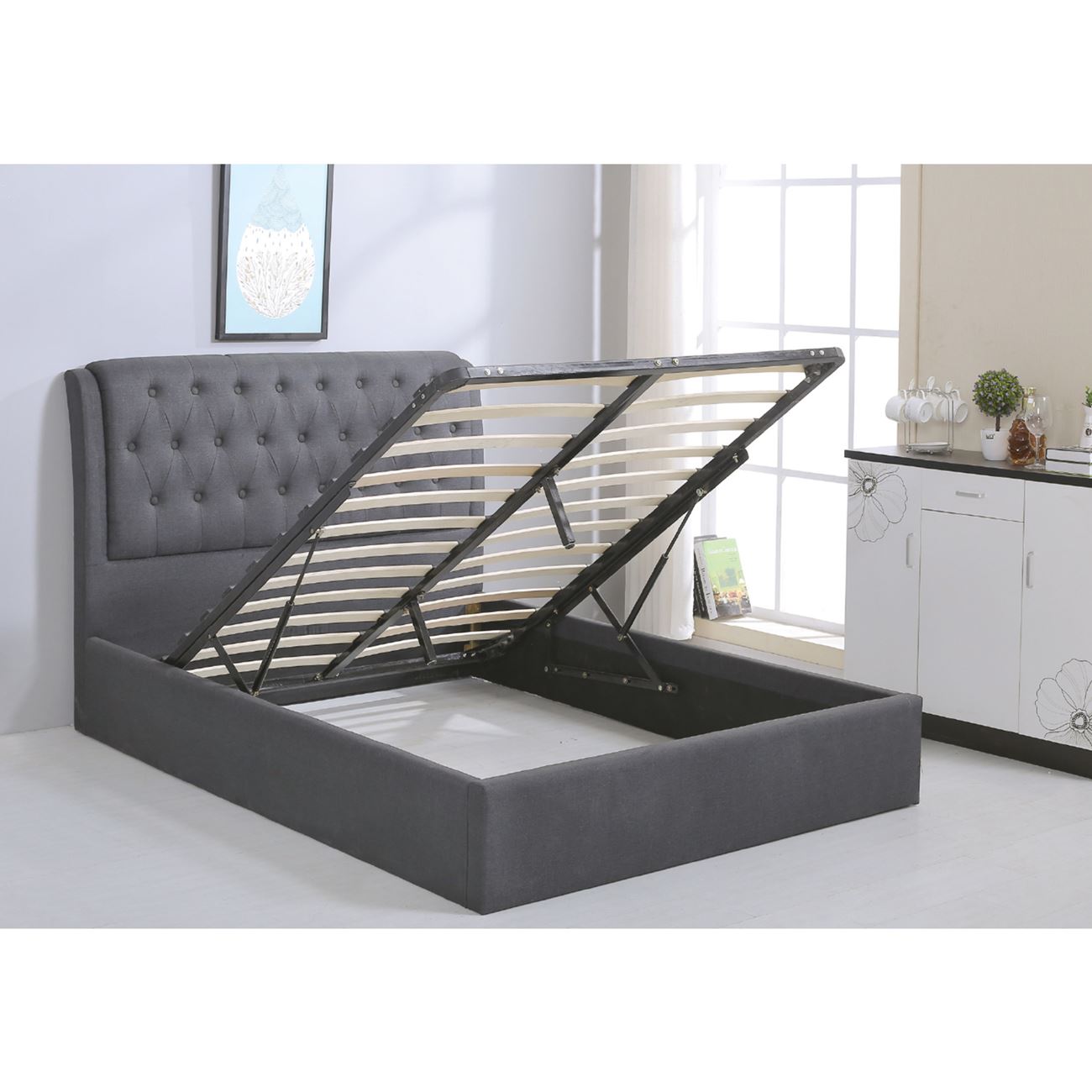 MAXWELL Κρεβάτι Διπλό με Αποθηκευτικό Χώρο, για Στρώμα 160x200cm, Ύφασμα Γκρι