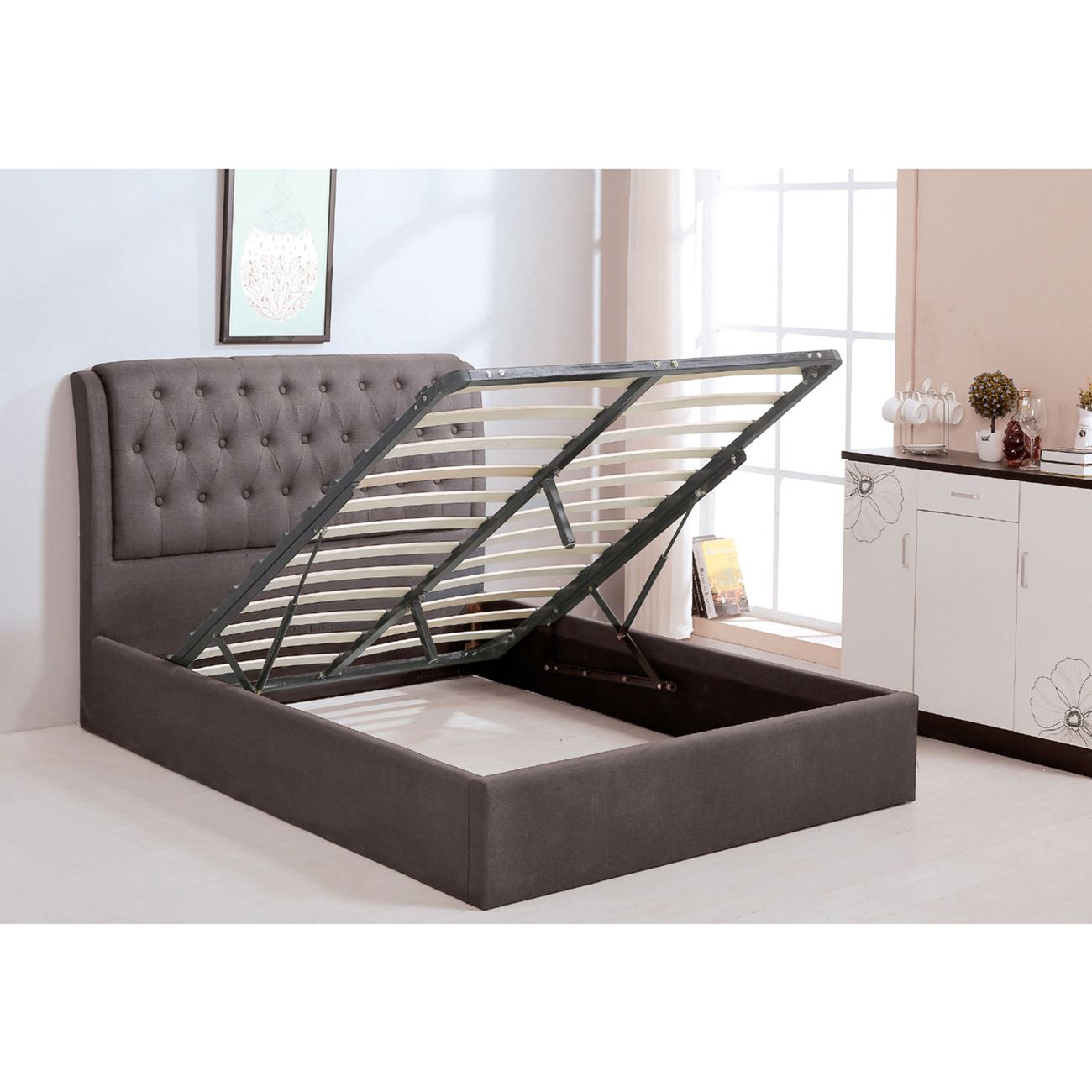 Ε8093,2 MAXWELL Κρεβάτι (για στρώμα 160x200cm) Ύφασμα Σκ.Καφέ/Αποθ.Χώρος
