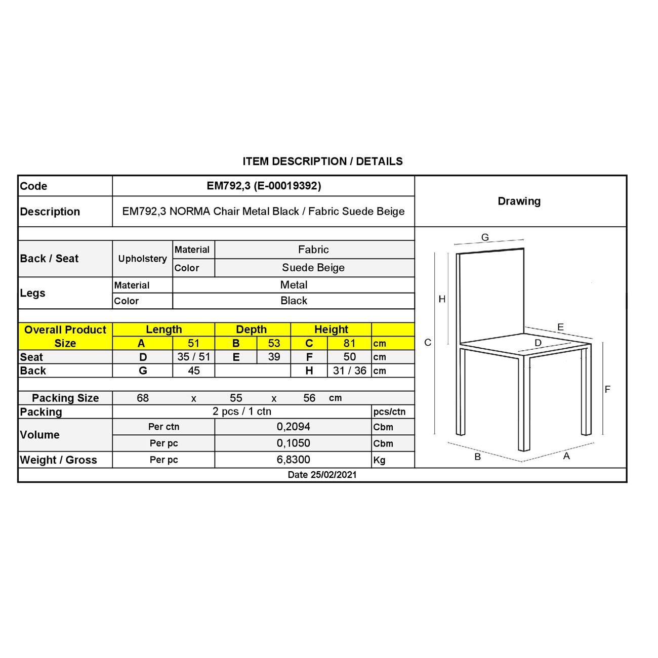 ΕΜ792,3 NORMA Καρέκλα Μεταλλική Μαύρη/Ύφασμα Suede Μπεζ
