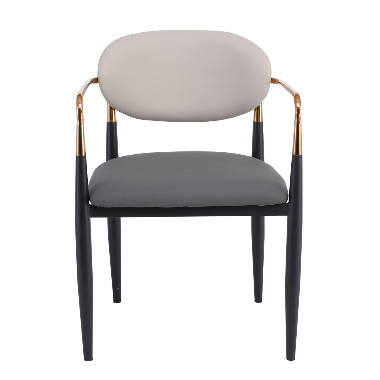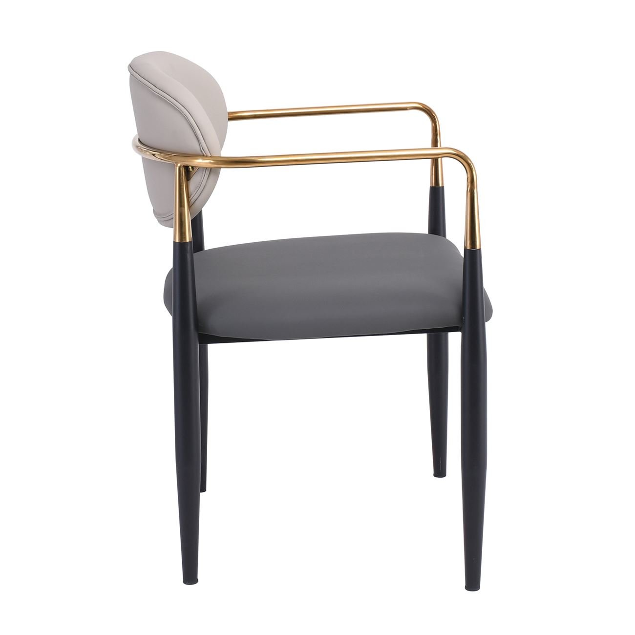 OLIVE Πολυθρόνα Μέταλλο Βαφή Μαύρο-Gold, Pu Ανοιχτό Γκρι-Σκούρο Γκρι