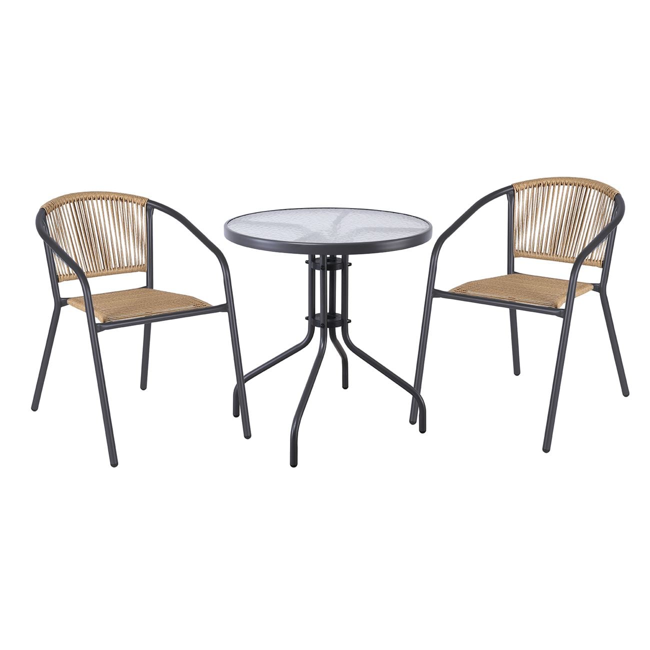 Ε2391,1S PATTY Set (Τραπ.Φ60+2 Πολυθρ) Μεταλ.Ανθρακί/PE Rattan Φυσικό