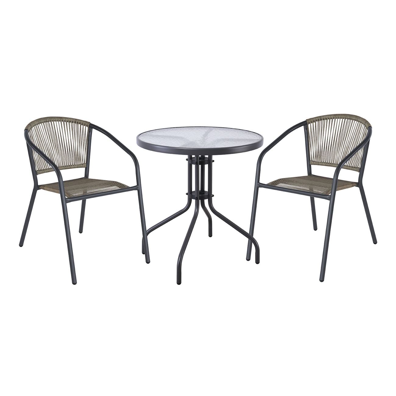 Ε2391,2S PATTY Set (Τραπ.Φ60+2 Πολυθρ) Μεταλ.Ανθρακί/PE Rattan Γκρι