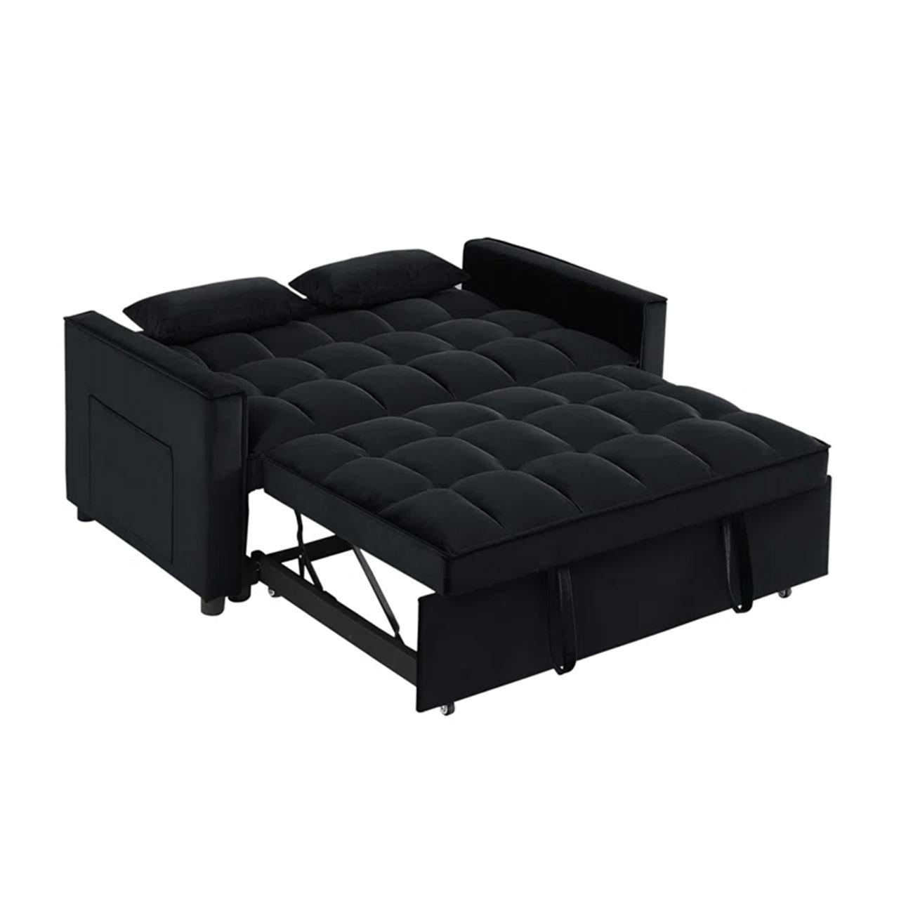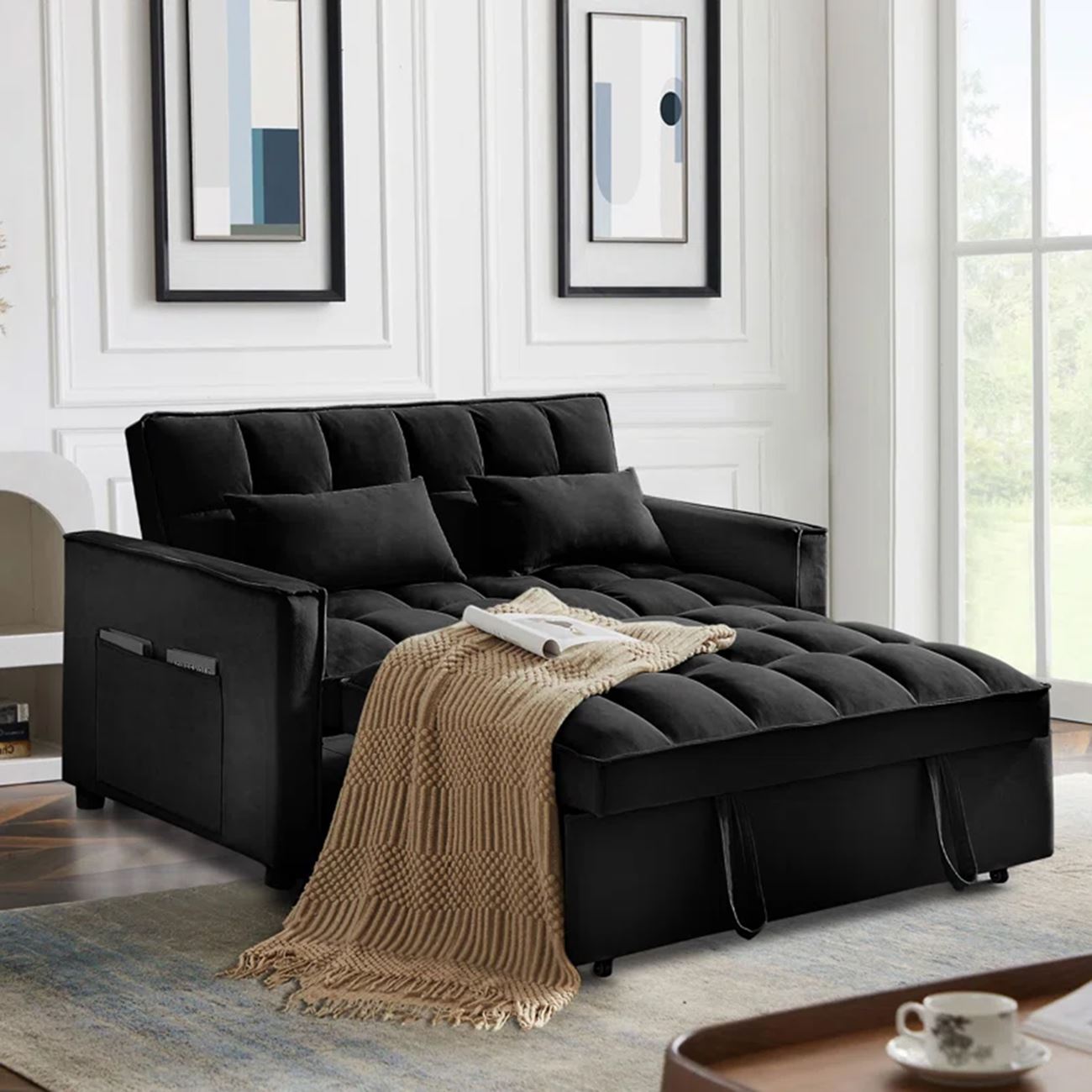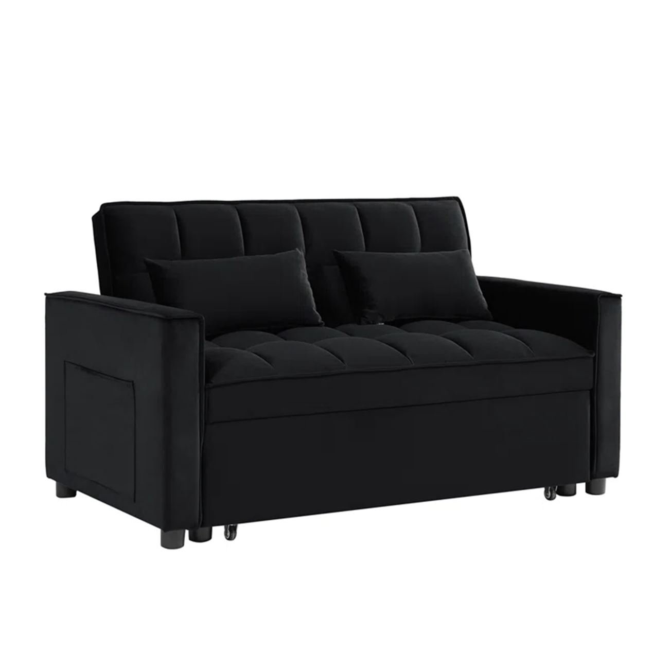 TEMPO Καναπές – Κρεβάτι, Με ανάκλιση πλάτης, Ύφασμα Velure Μαύρο