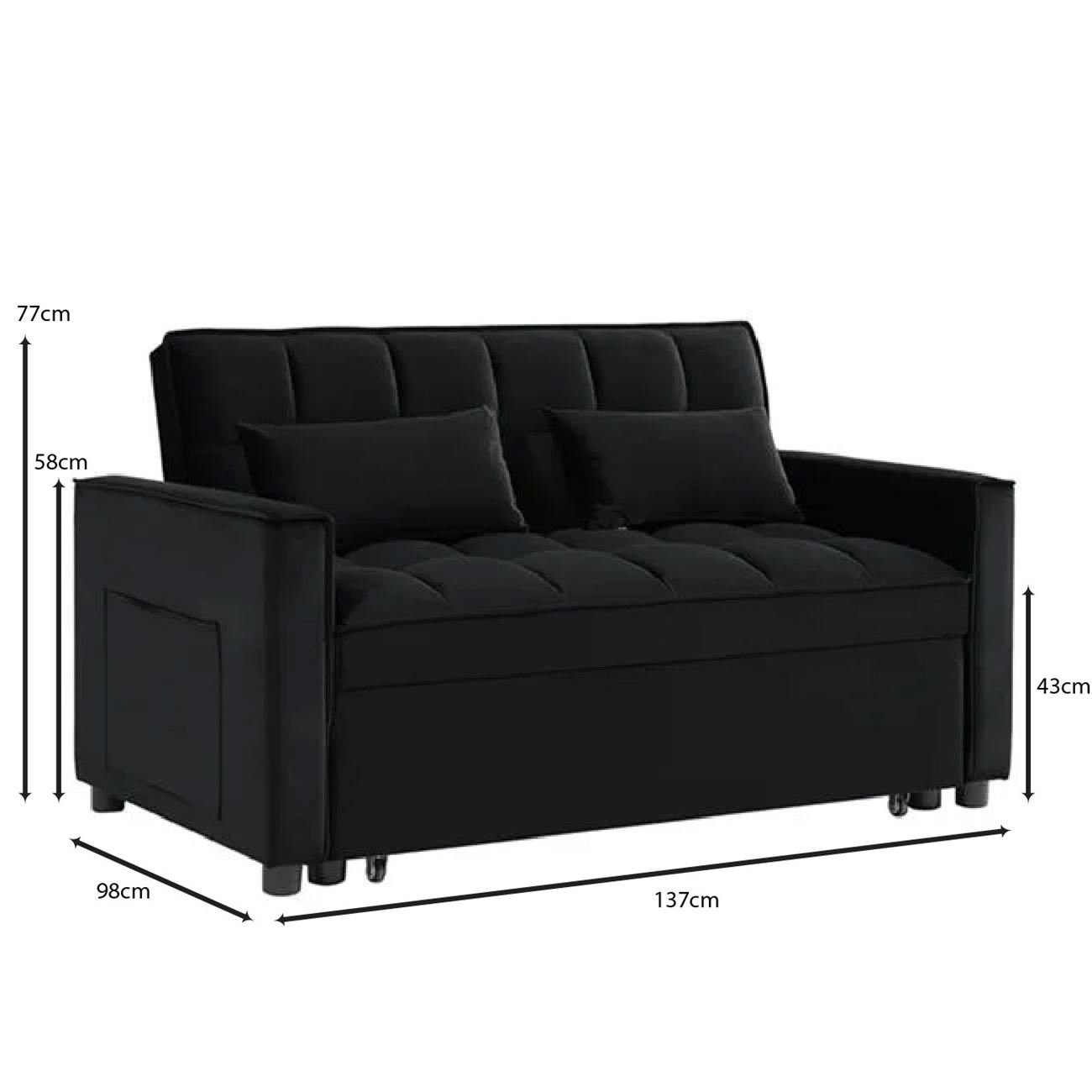 Ε998,2 TEMPO Καναπές Κρεβάτι Velure Μαύρο 140x95x80cm