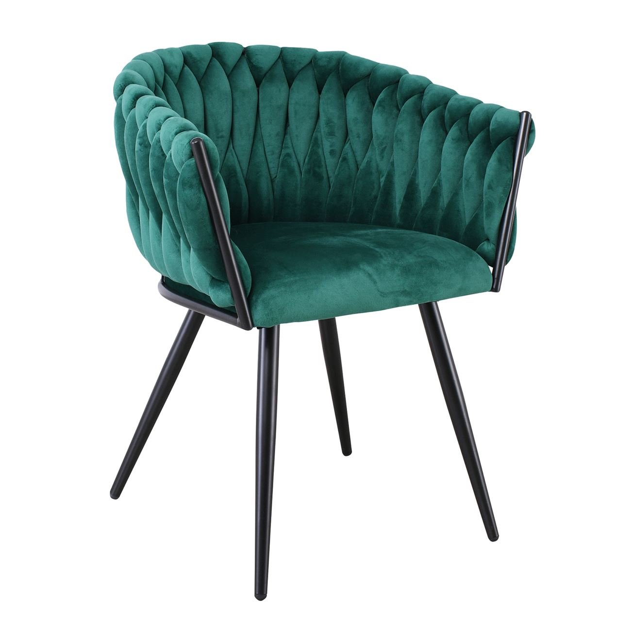 VERDI Πολυθρόνα Μέταλλο Βαφή Μαύρο, Ύφασμα Velure, Απόχρωση Forest Green