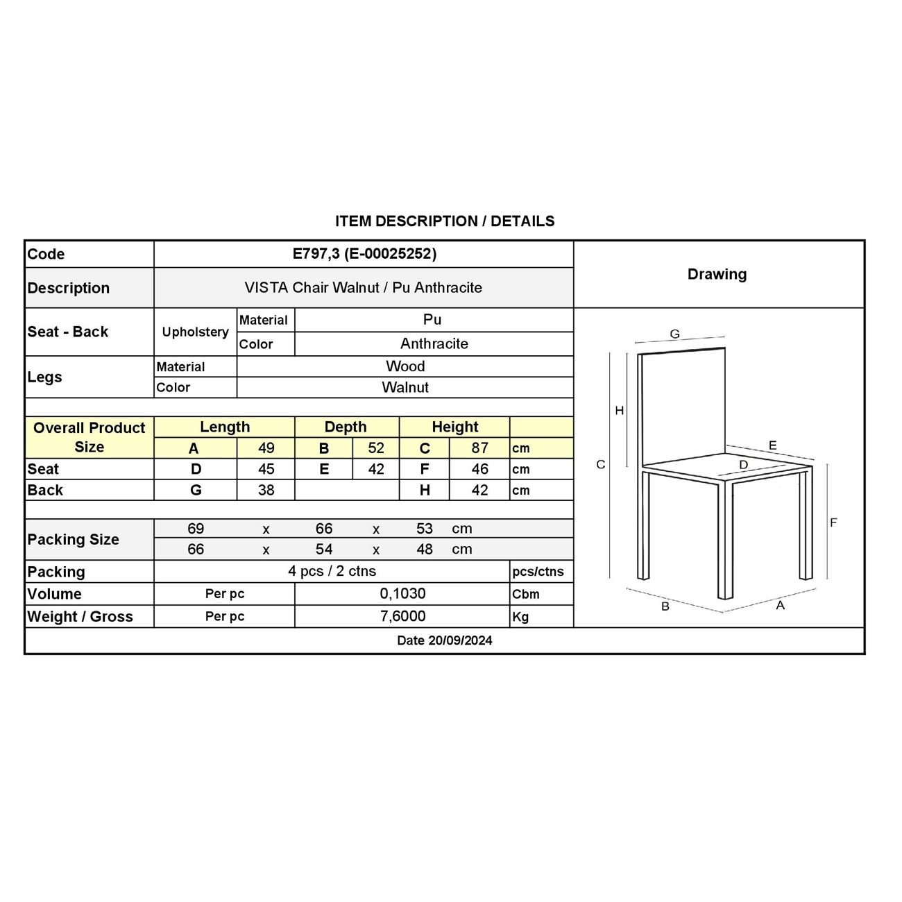 Ε797,3 VISTA Καρέκλα Καρυδί, Pu Ανθρακί